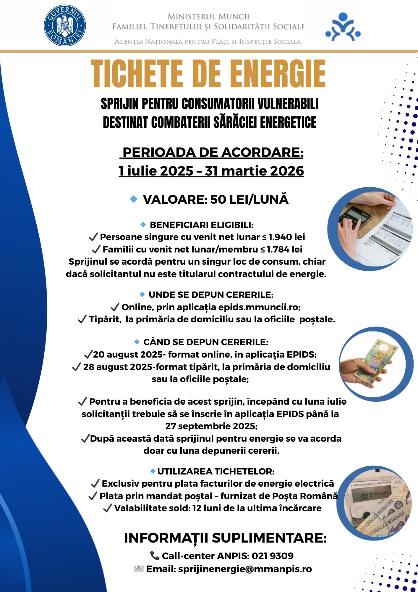 Vă prezentăm, mai jos, demersurile pe care le puteți face pentru a beneficia de tichetul electronic de energie în valoare de 50 lei/lună pentru a beneficia de reducerea facturii la energie electrică.